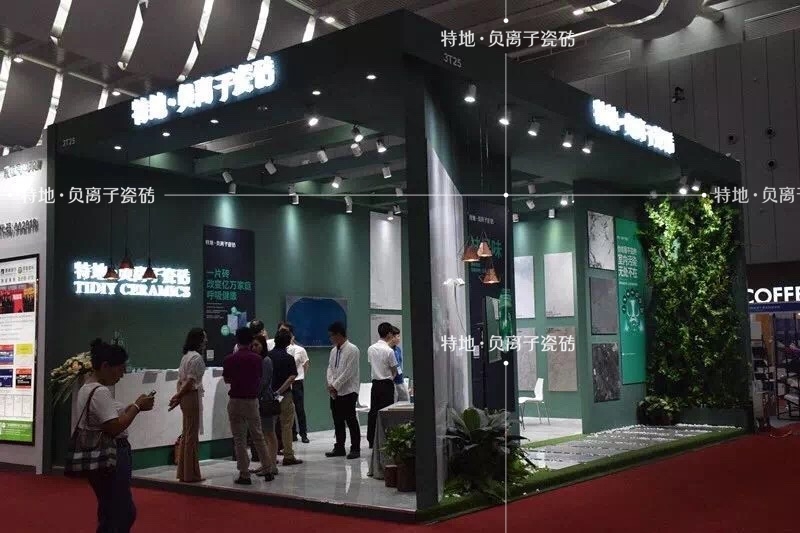 在密密麻麻的展位中,依然能够一眼找到健康“特地绿”的特地·负离子瓷砖展位。结合不同绿植造型,营造出充满大自然气息的氛围,让人忍不住驻足。
