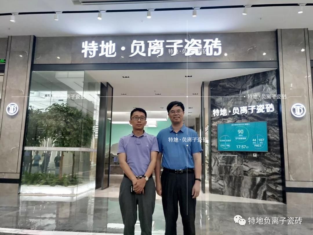 (左一:特地·负离子瓷砖掌舵人李强;右一景德镇陶瓷大学材料学院院长李月明)
