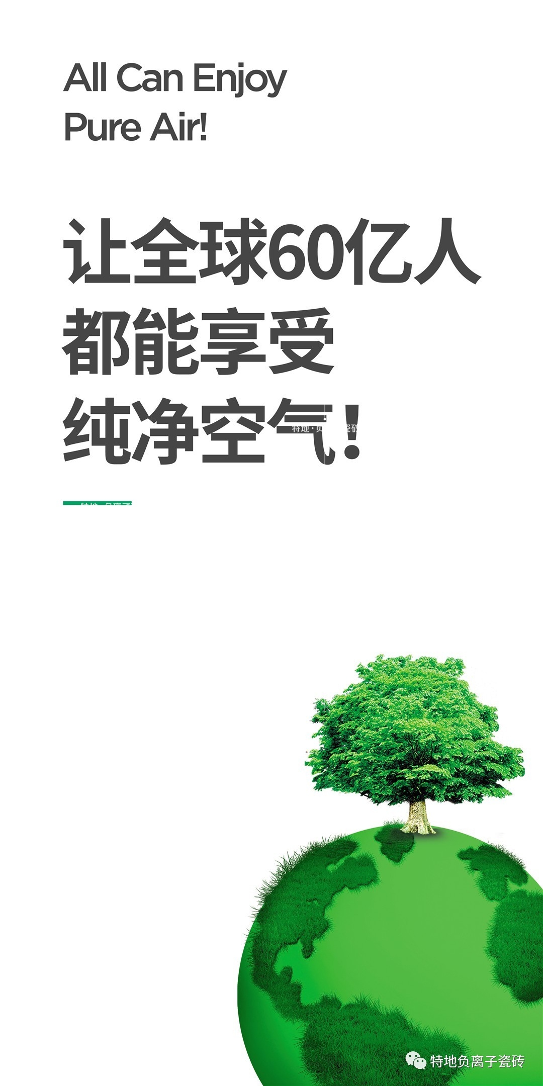 “ 让全球60亿人,都能享受纯净空气”不仅是特地·负离子瓷砖的品牌愿景,更是推动家居行业发展的一份责任。特地·负离子瓷砖作为负离子瓷砖品类开创者,在2002年同行都在卖花色的时候就开始思考,瓷砖能不能不再只是装饰品,而是可以减少装修污染的危害,为消费者带来更宜居的家居空间!