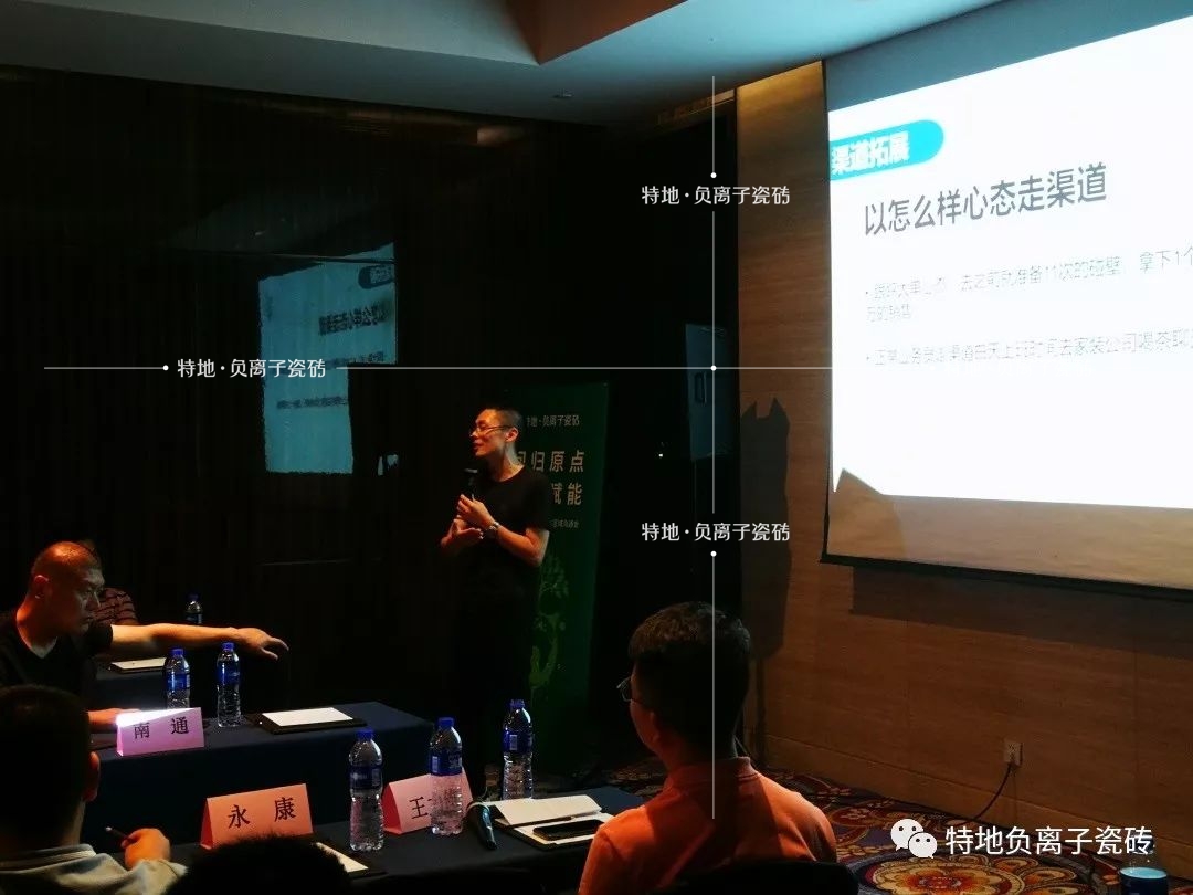 展厅是品牌在终端展示给消费者的第一印象!来自特地·负离子瓷砖市场中心总监邱猛先生为在座特地家人们深入解析负离子体验馆与负离子盈利模型。经过一系列的体验、呈现让客户在店内感知负离子瓷砖,做科普性的展厅,提升终端店面人员的专业性以及正确理解盈利模式的逻辑思维。